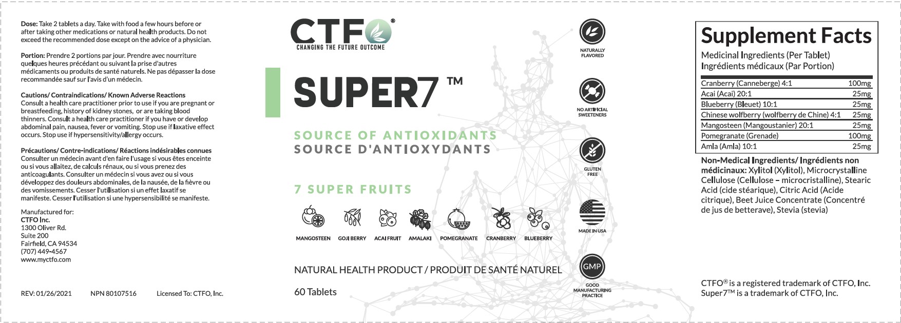 Super7 is a delicious blend of the world's 7 major Super Fruits; Amalaki, Acai, Goji, Mangosteen, Pomegranate, Blueberry and Cranberry. While providing vitamins, antioxidants, energy, enzymes and much more, CTFO has combined all 7 Super Fruits into a perfectly blended, synergistic immune support chewable.