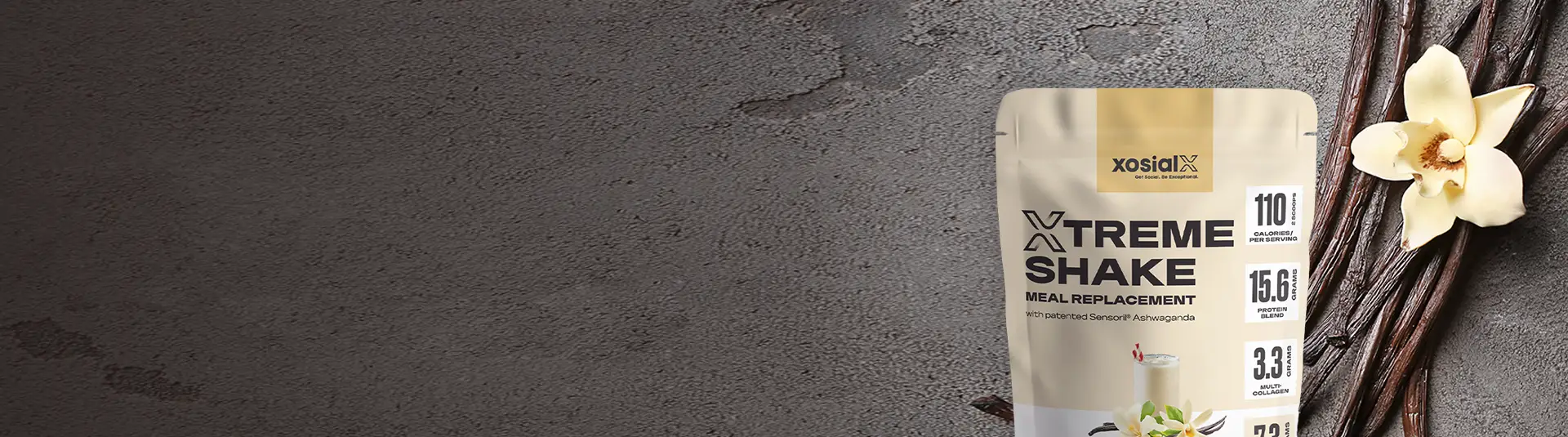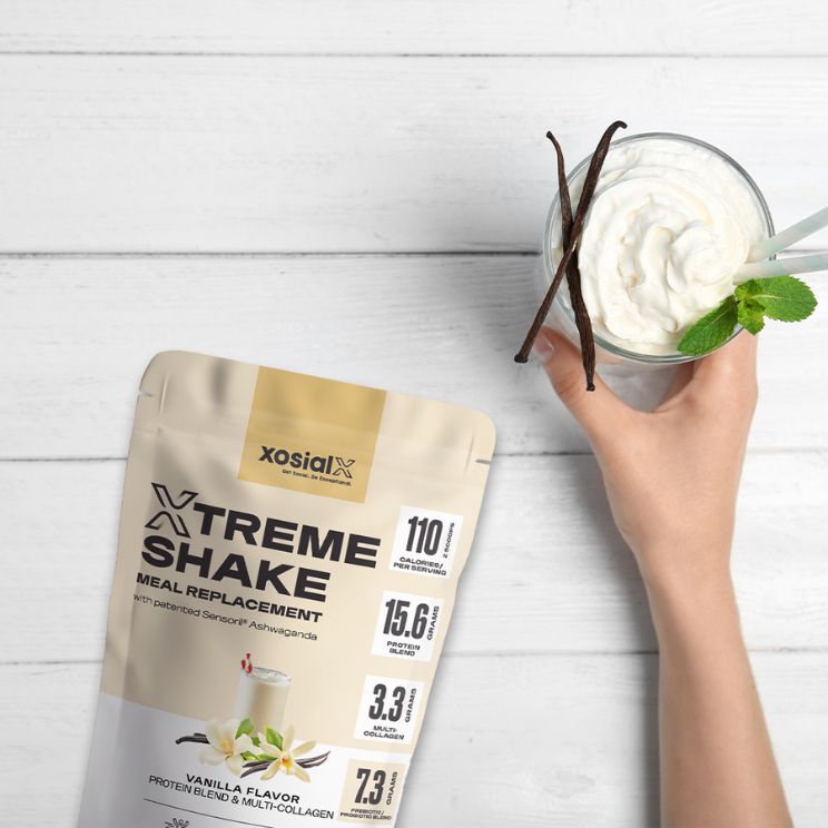 Our XTREME SHAKE MEAL REPLACEMENT, with patented Sensoril® Ashwaganda and a prebiotic & probiotic blend, delivers a complete meal replacement with age-defying collagen benefits.
